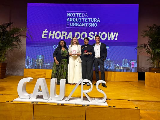 Simone Neutzling expressou ainda sua gratidão pelo reconhecimento e parabenizou todos os profissionais premiados na cerimônia, reforçando a importância de fortalecer a arquitetura e o urbanismo no Rio Grande do Sul. “Nos sentimos profundamente honrados por este reconhecimento e parabenizamos todos os profissionais premiados, que fortalecem a arquitetura e o urbanismo no estado”, finalizou.